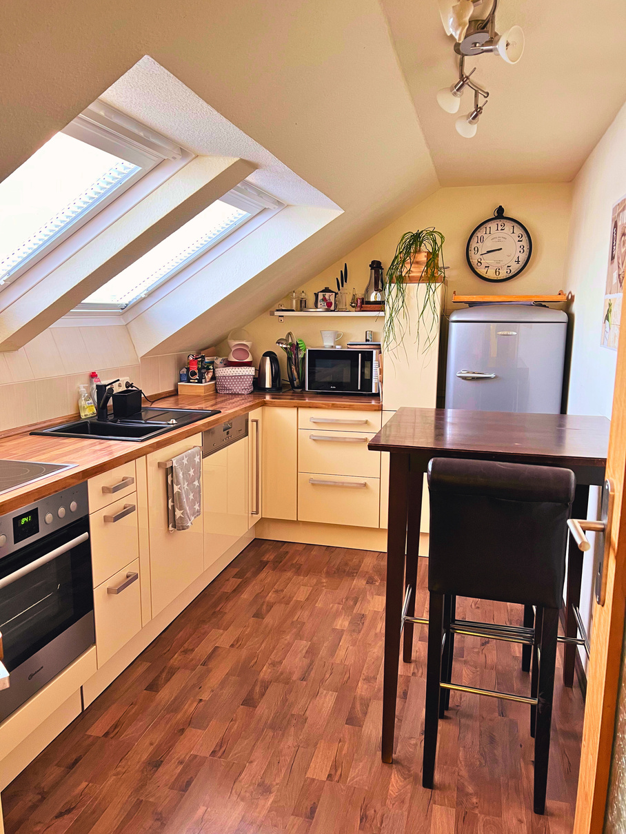 Küche mit Herd, Ofen, Spülmaschine
